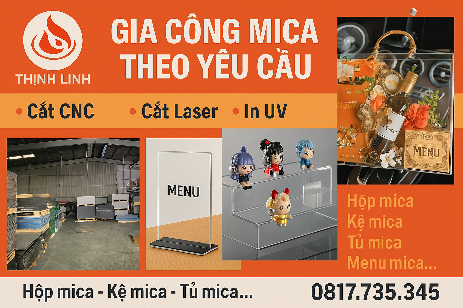 Mica Thịnh Linh là xưởng gia công mica theo yêu cầu với hơn nhiều năm kinh nghiệm trong lĩnh vực sản xuất – thiết kế – gia công sản phẩm mica kỹ thuật và trưng bày cho doanh nghiệp, chuỗi bán lẻ và đối tác xuất khẩu.