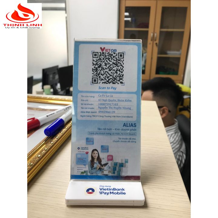 Mô tả sản phẩm - Kích thước 16*8 cm - Mã QR chất liệu Mica đặt tại quầy thu ngân, hỗ trợ thanh toán vô cùng tiện lợi cho các shop bán hàng Offline, Online - Là giải pháp thanh toán cho phép khách hàng sử dụng tính năng QR Pay được tích hợp sẵn trong ứng dụng MOBILE BANKING của các ngân hàng trên điện thoại di động và quét mã QR tại điểm chấp nhận thanh toán để thanh toán giao dịch. - Hiện tại thanh toán QR hiện đang có hơn 30 triệu khách hàng thường xuyên giao dịch thanh toán qua ngân hàng. Giúp các shop tiếp cận nhiều hơn với khách hàng tiềm năng, giúp tăng trưởng doanh số bán hàng.